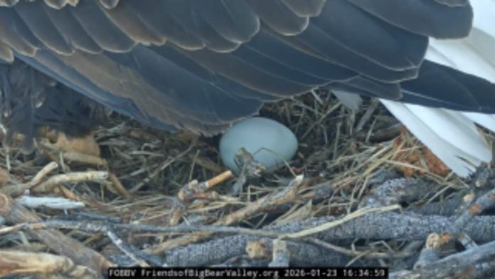 Jackie and Shadow, the beloved bald eagle pair whose nest is watched by viewers around the world, welcomed their first egg of the 2026 season on Friday, according to Friends of Big Bear Valley.