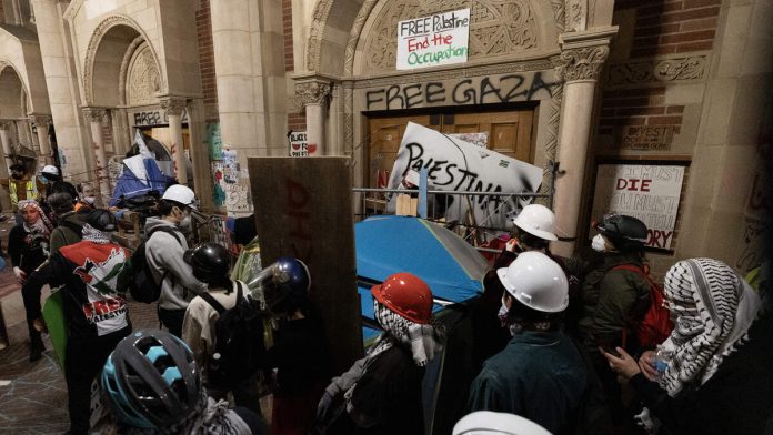 The complaint includes aerial photographs of the encampment, as well as images of graffiti spray-painted on Royce Hall’s walls. It also references Alicia Verdugo, who served as the UCLA Student Association’s Cultural Affairs commissioner from 2022 to 2025 and resigned amid allegations of deliberately rejecting Jewish applicants to the office.