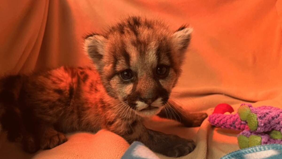 A baby mountain lion, named Crimson, was rescued by state wildlife officials in Southern California after being found orphaned and left to starve. At just three weeks old, Crimson lost toes on one of his hind feet, likely due to umbilical cord strangulation, which may have led his mother to abandon him.