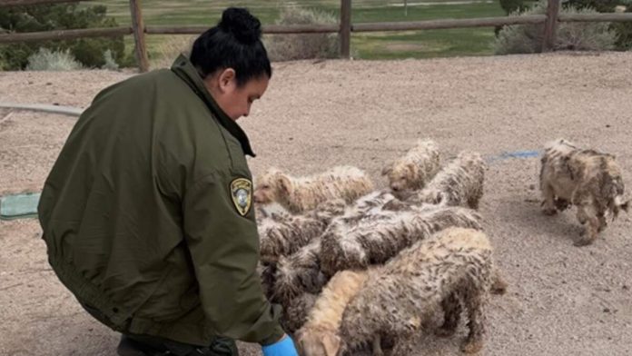An officer arrived and saw the dogs, many with “matted fur filled with dirt and poop.”